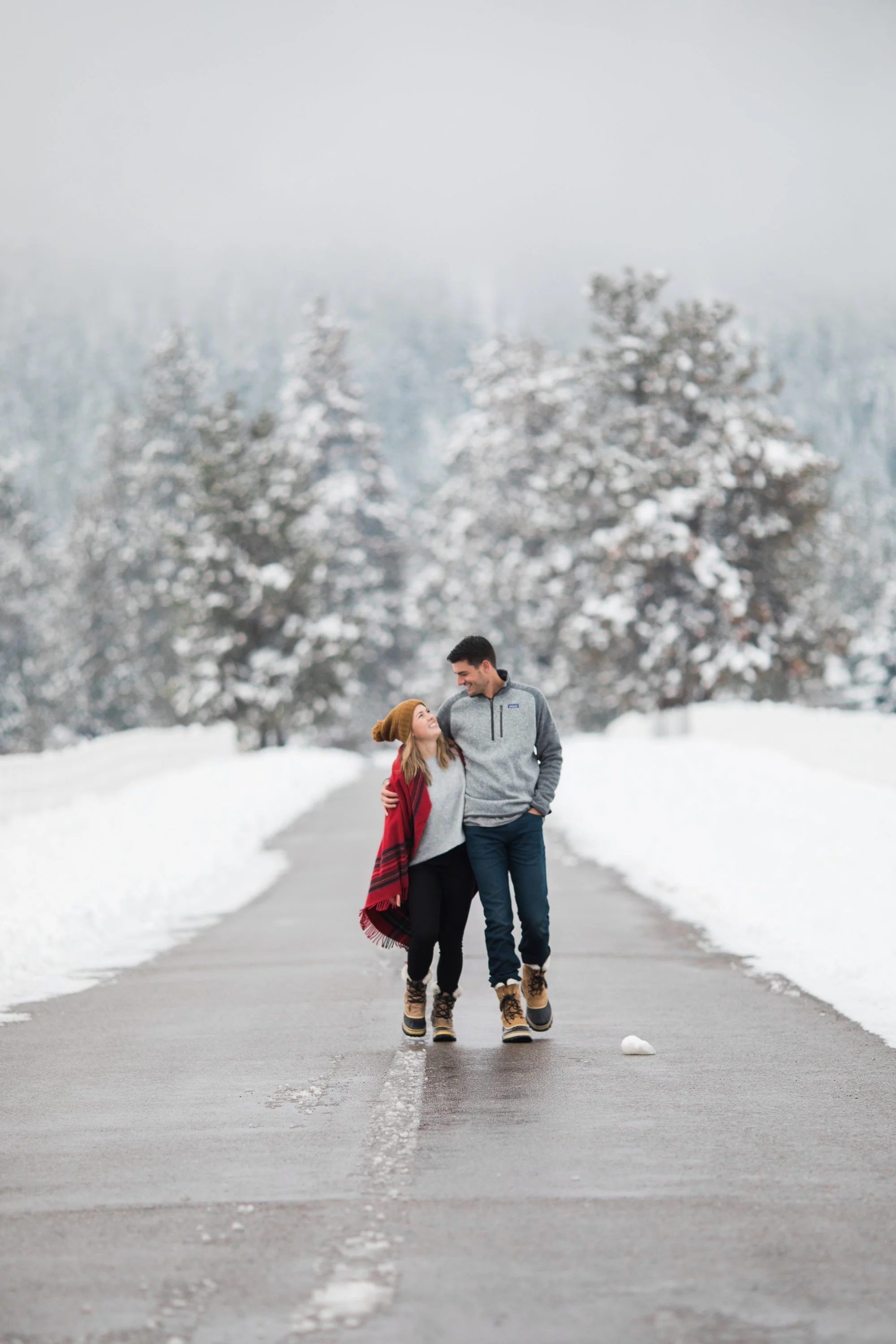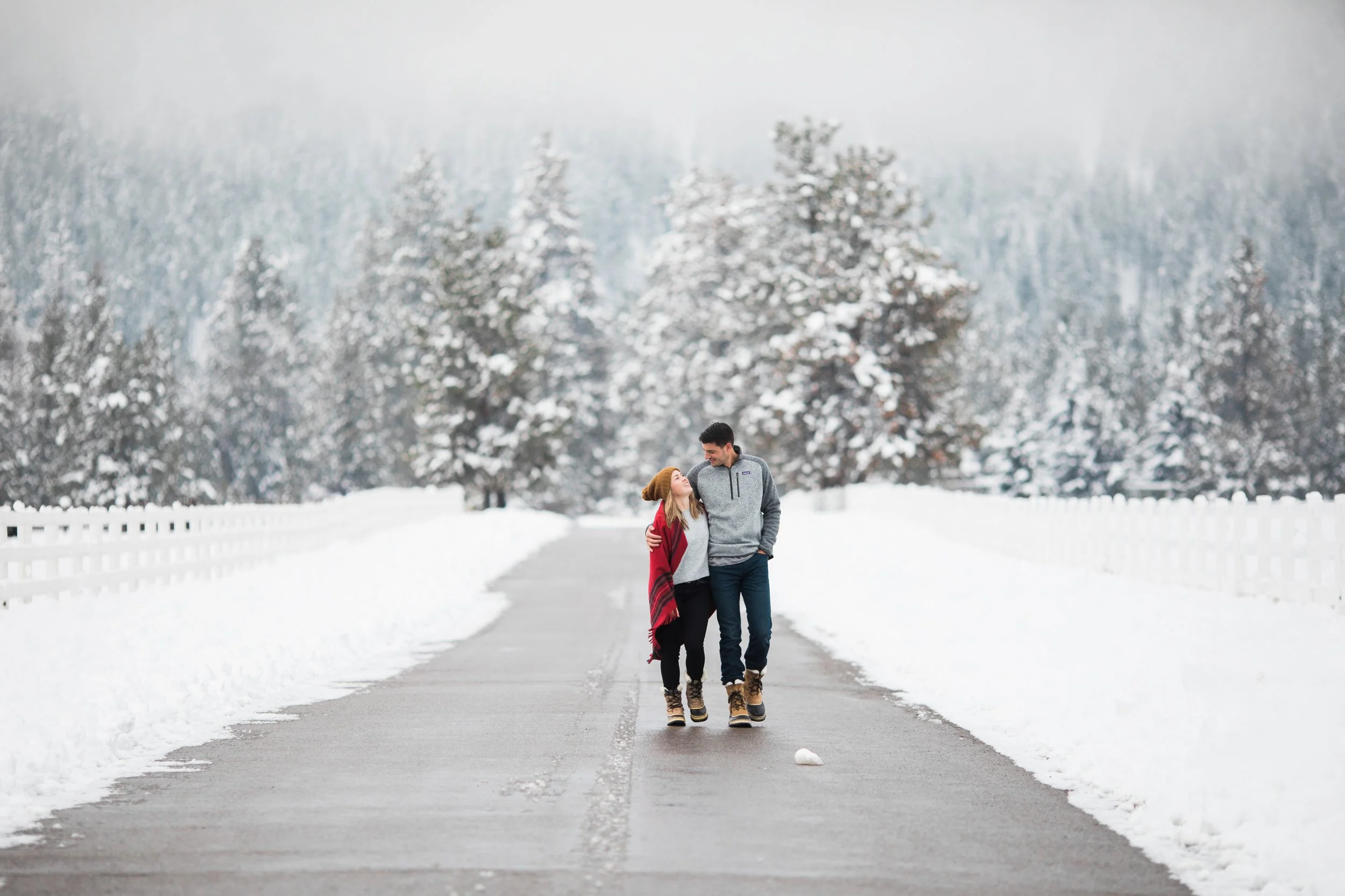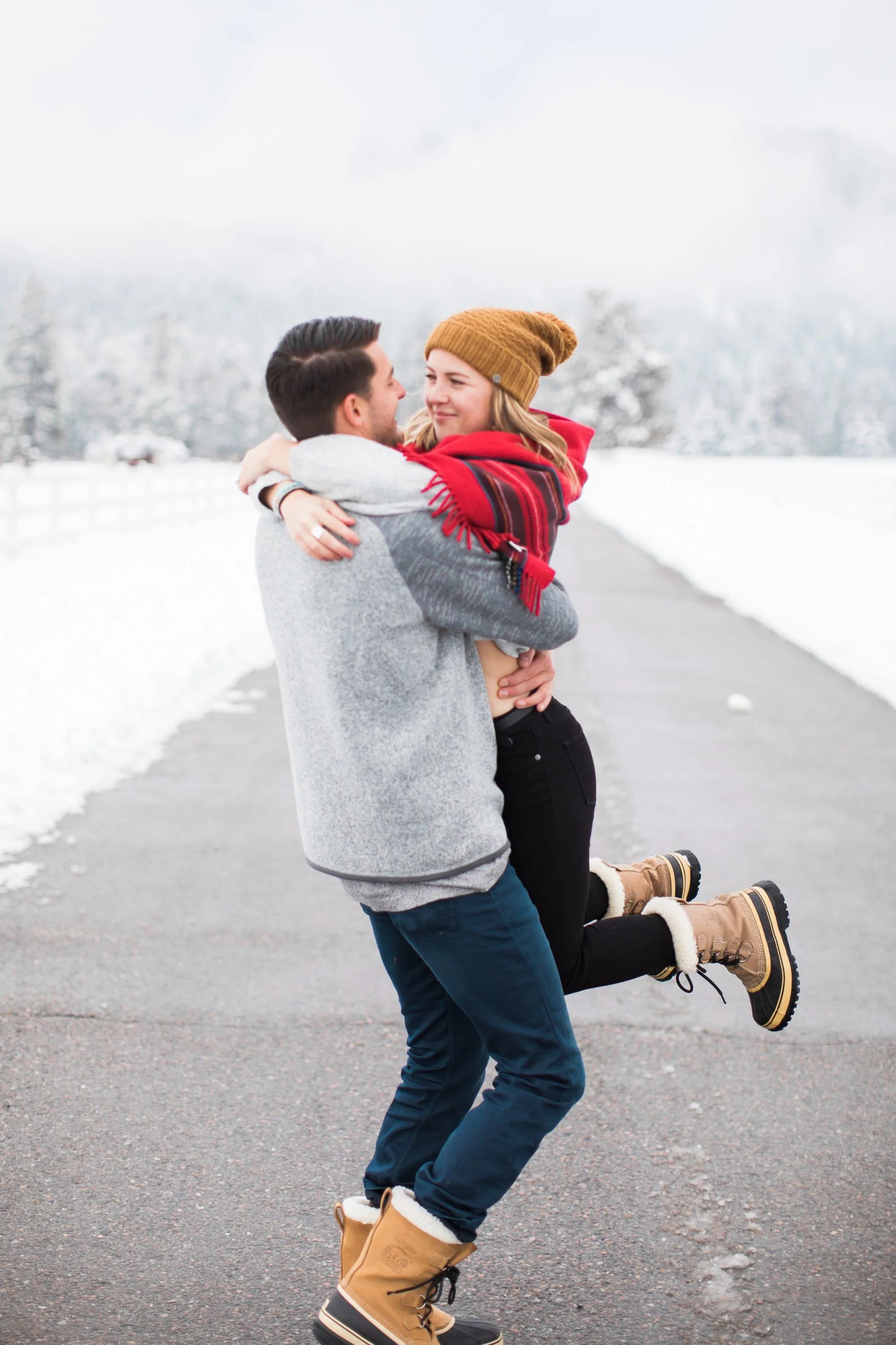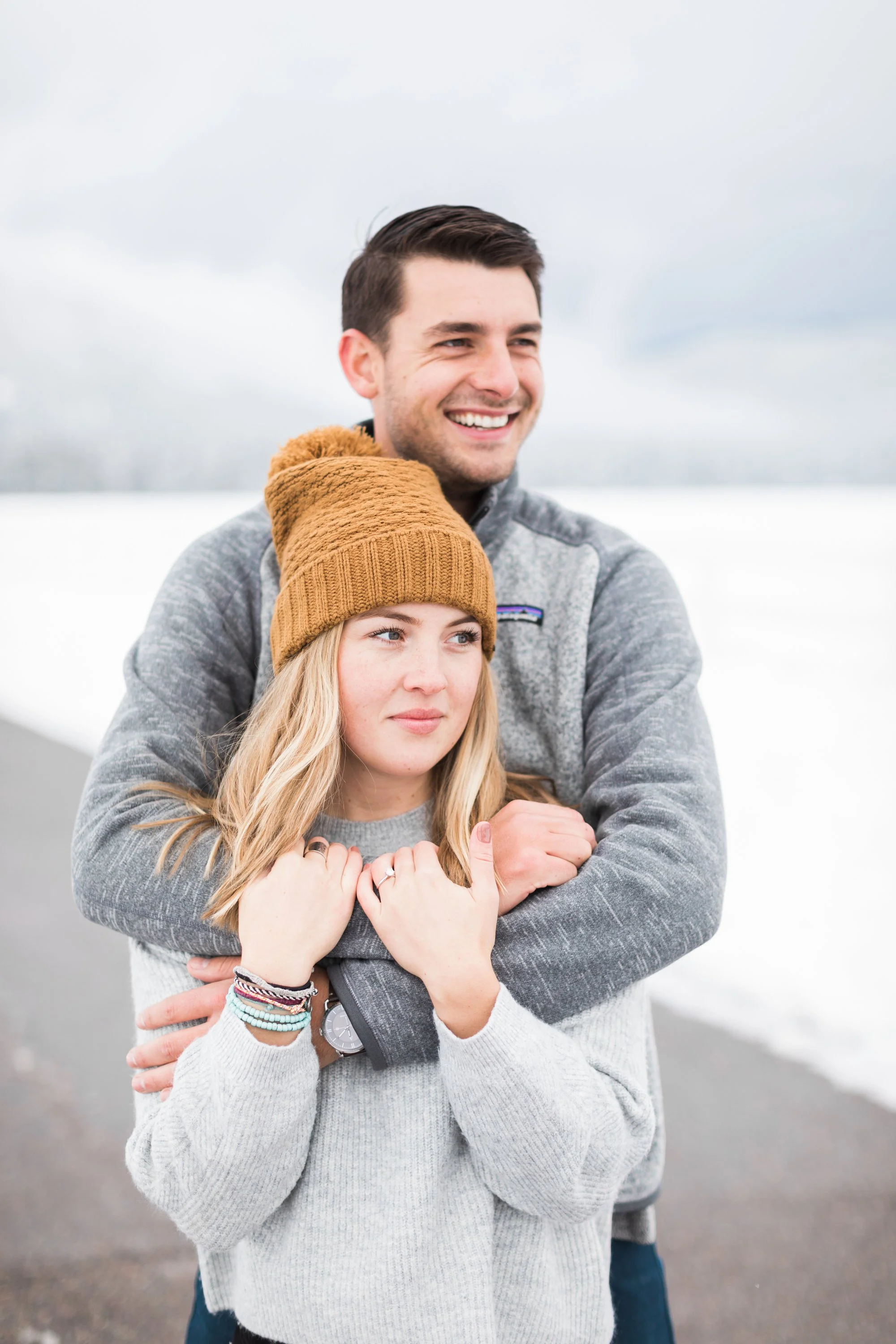 Surrounded by snow and wide open scenery, the two leaned into the season instead of fighting it. Laughter, movement, and close moments helped keep the energy natural, creating photos that feel authentic to their relationship rather than overly posed. Winter sessions have a way of simplifying everything, letting the focus fall on emotion, texture, and the people in front of the camera.