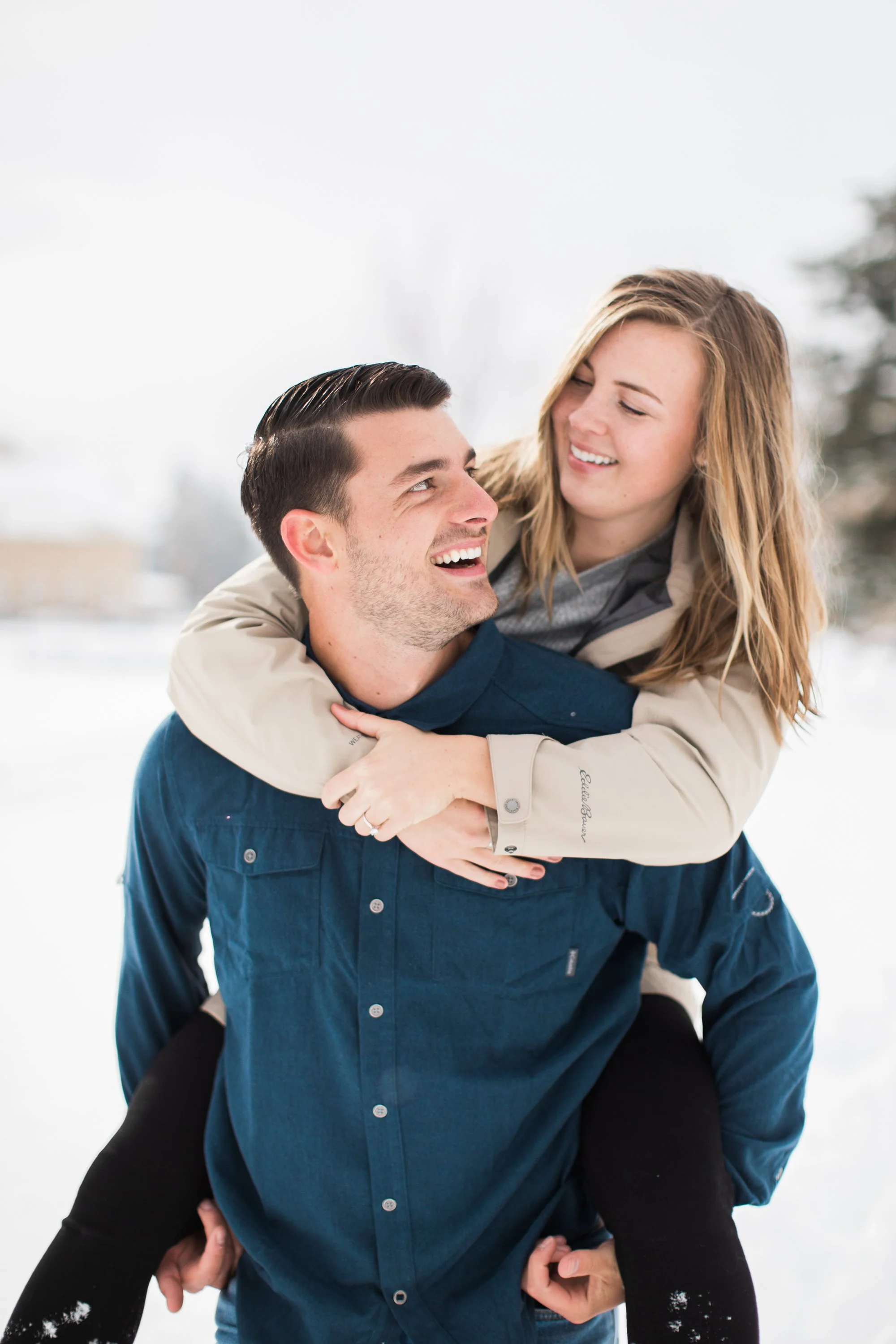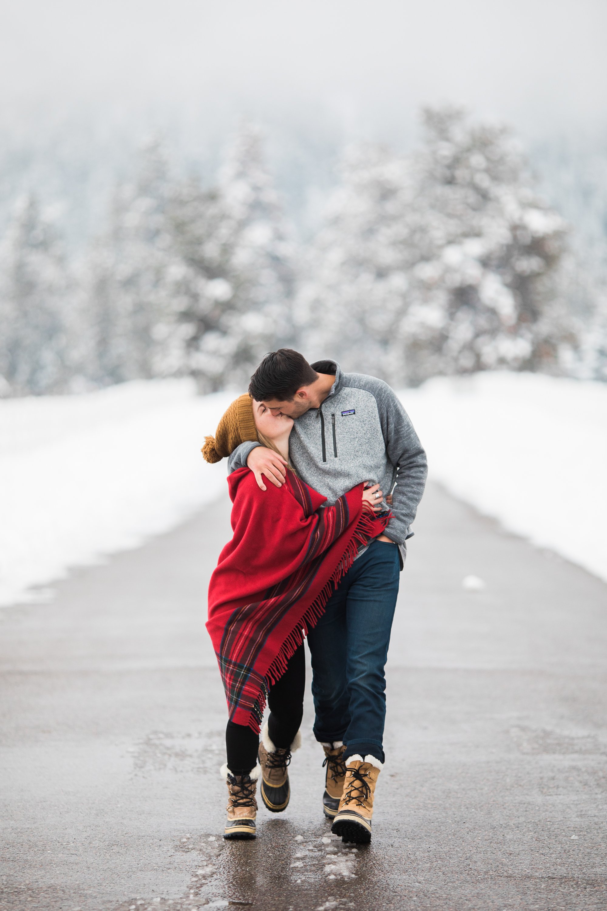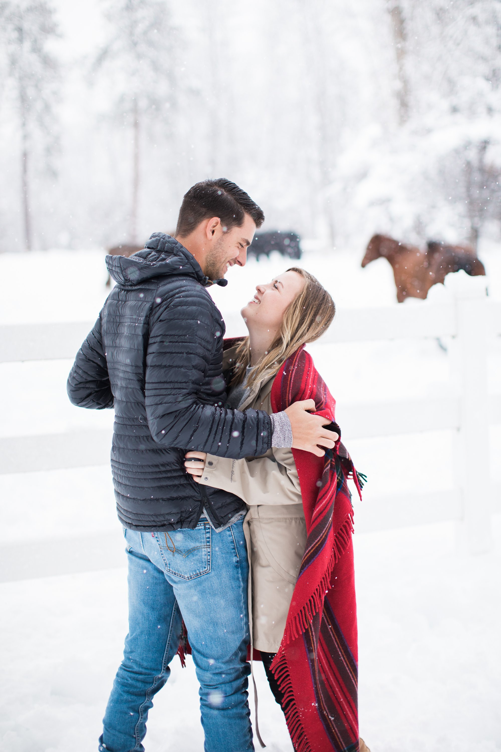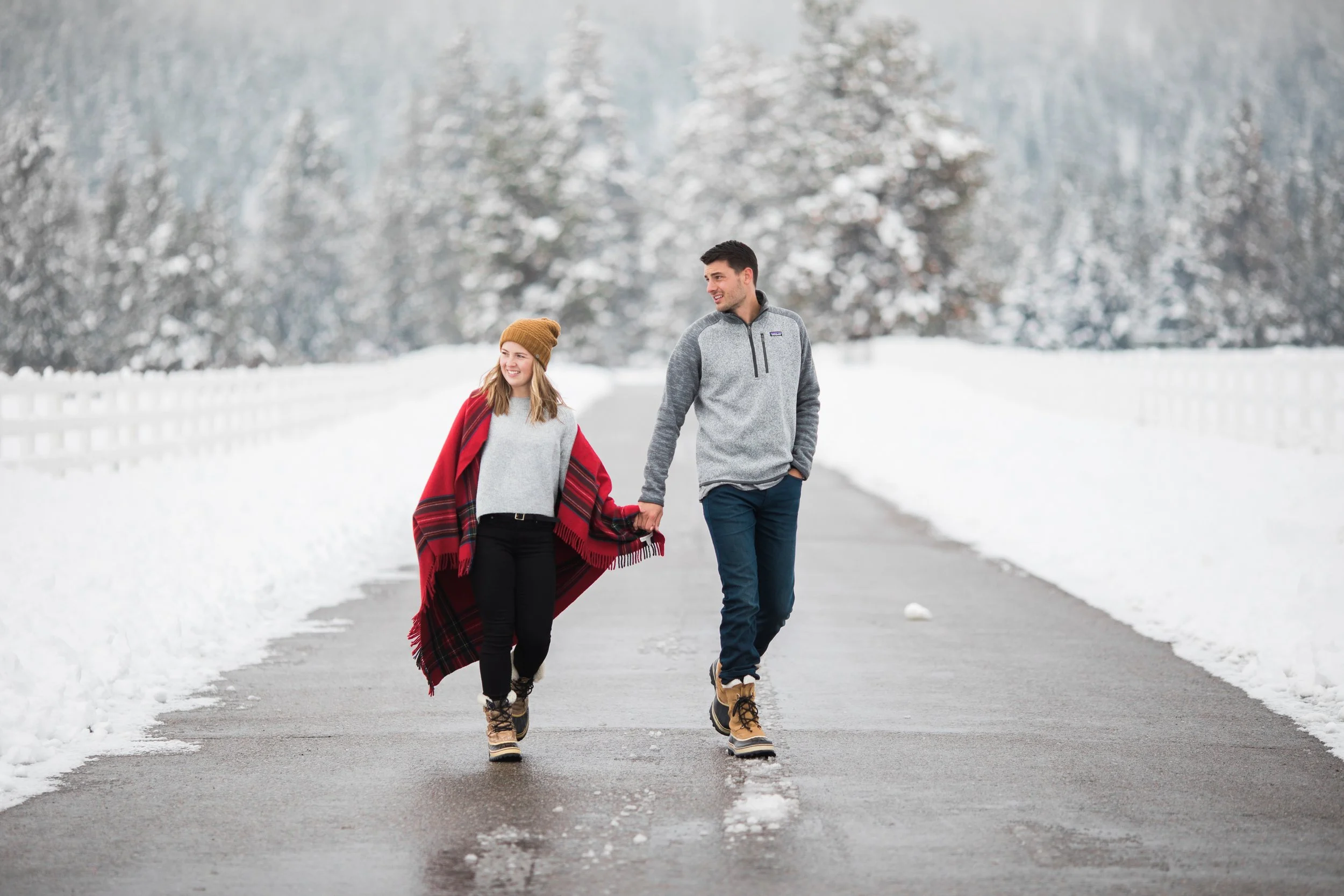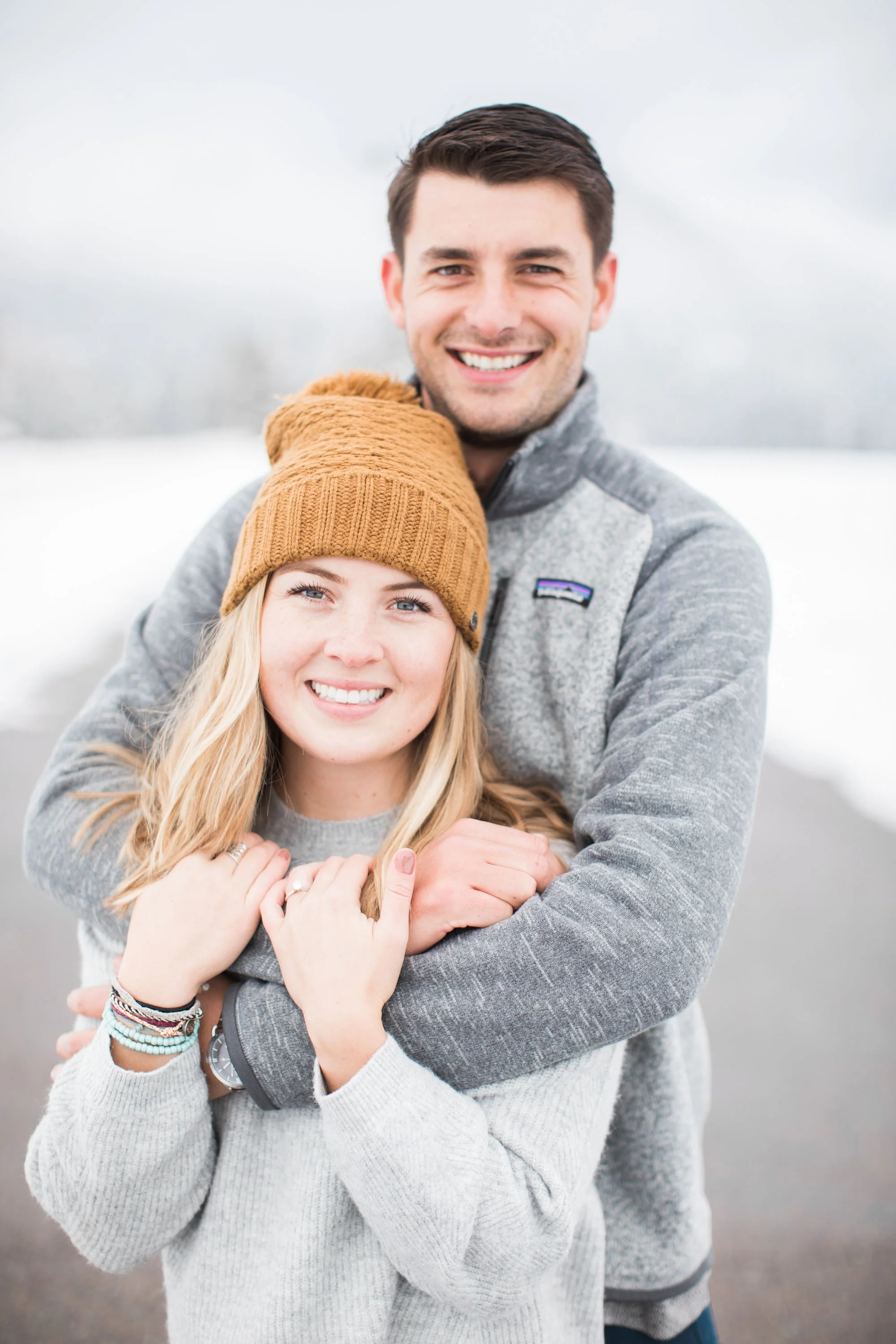 Surrounded by snow and wide open scenery, the two leaned into the season instead of fighting it. Laughter, movement, and close moments helped keep the energy natural, creating photos that feel authentic to their relationship rather than overly posed. Winter sessions have a way of simplifying everything, letting the focus fall on emotion, texture, and the people in front of the camera.