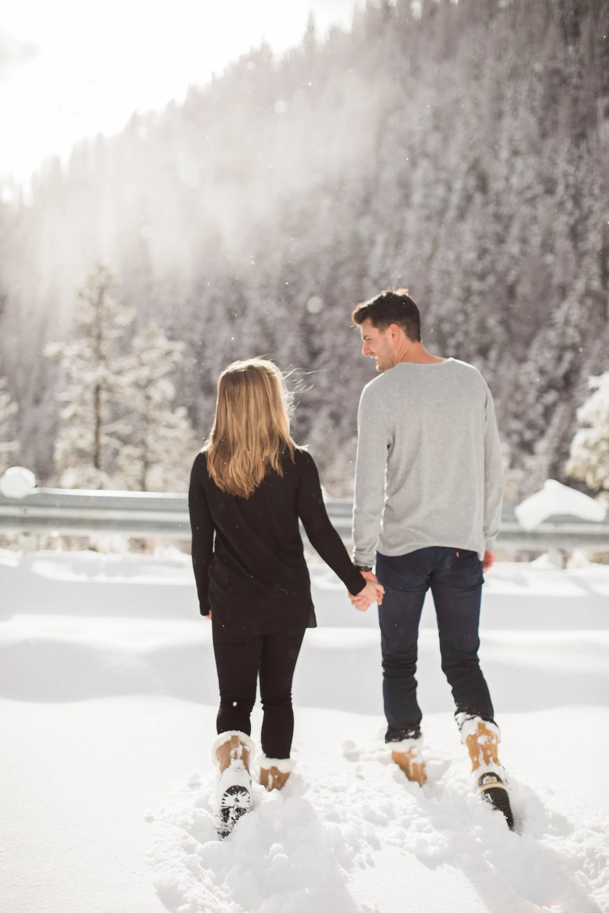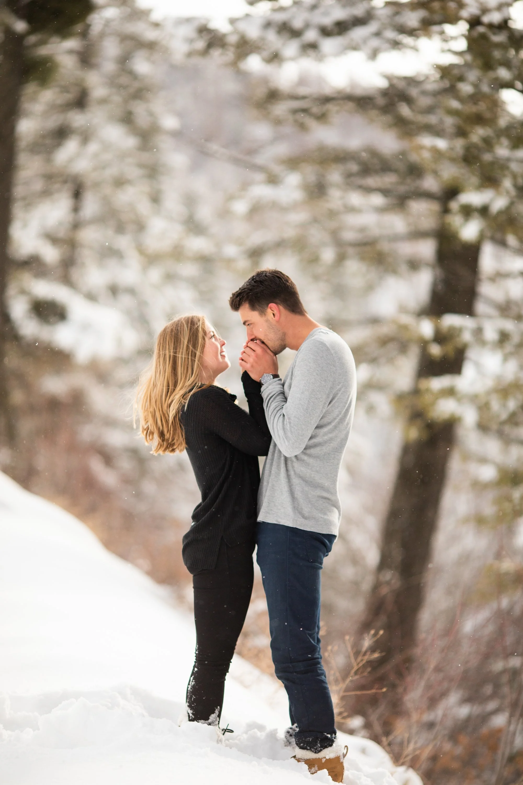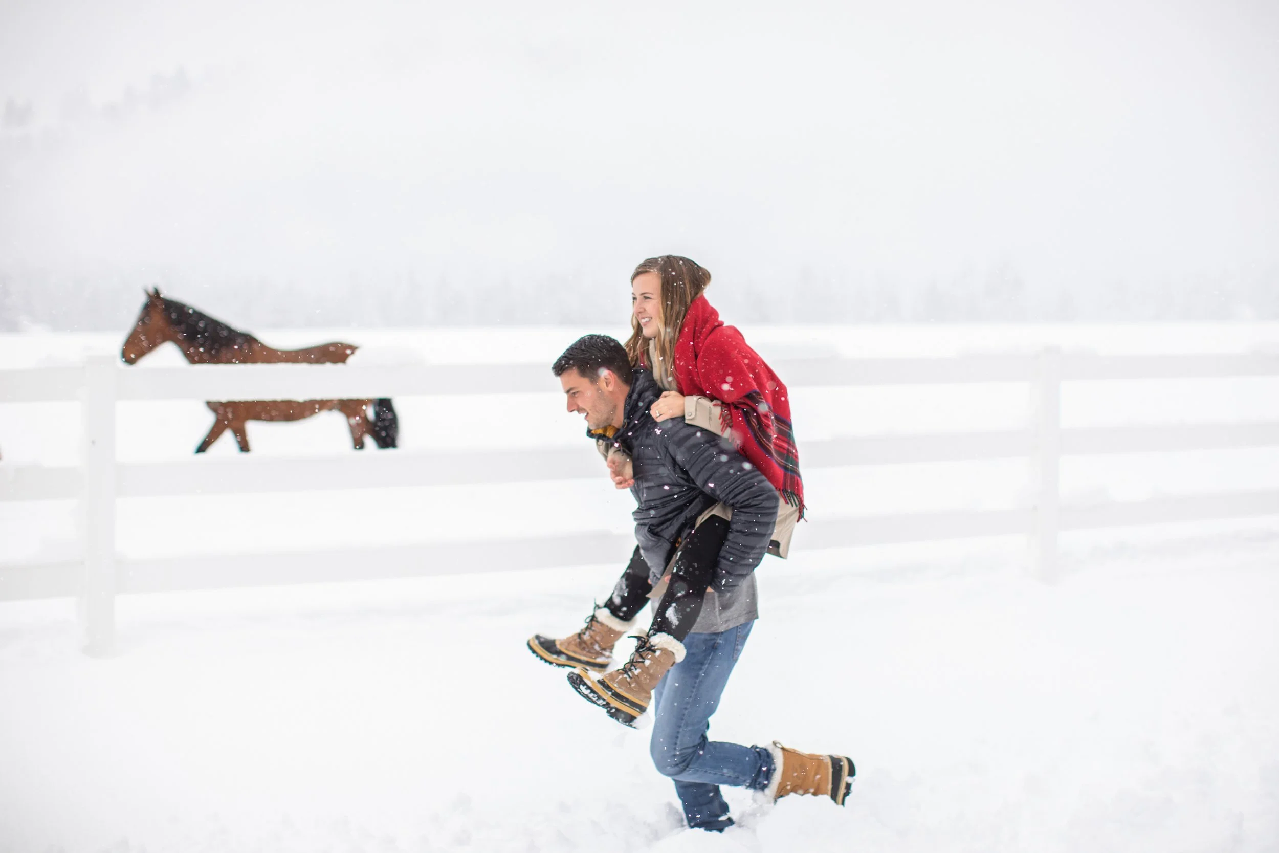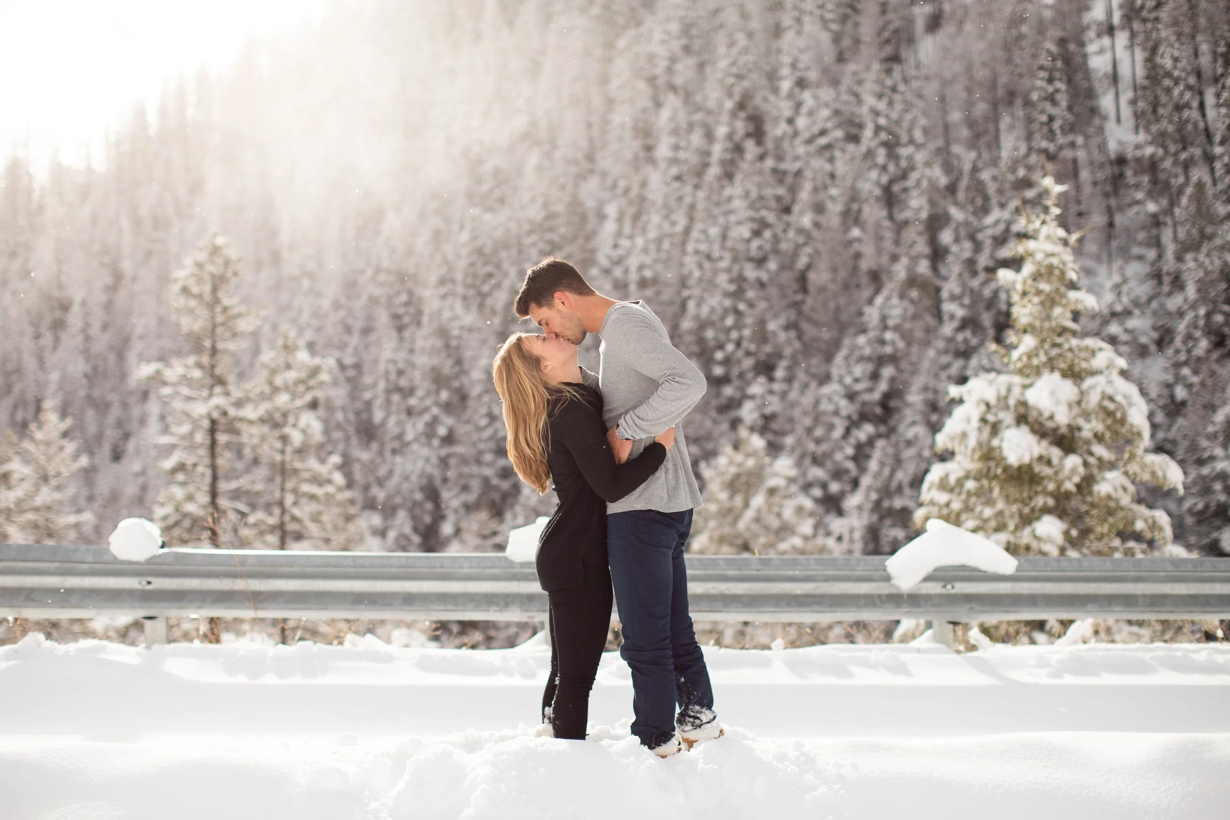 Surrounded by snow and wide open scenery, the two leaned into the season instead of fighting it. Laughter, movement, and close moments helped keep the energy natural, creating photos that feel authentic to their relationship rather than overly posed. Winter sessions have a way of simplifying everything, letting the focus fall on emotion, texture, and the people in front of the camera.