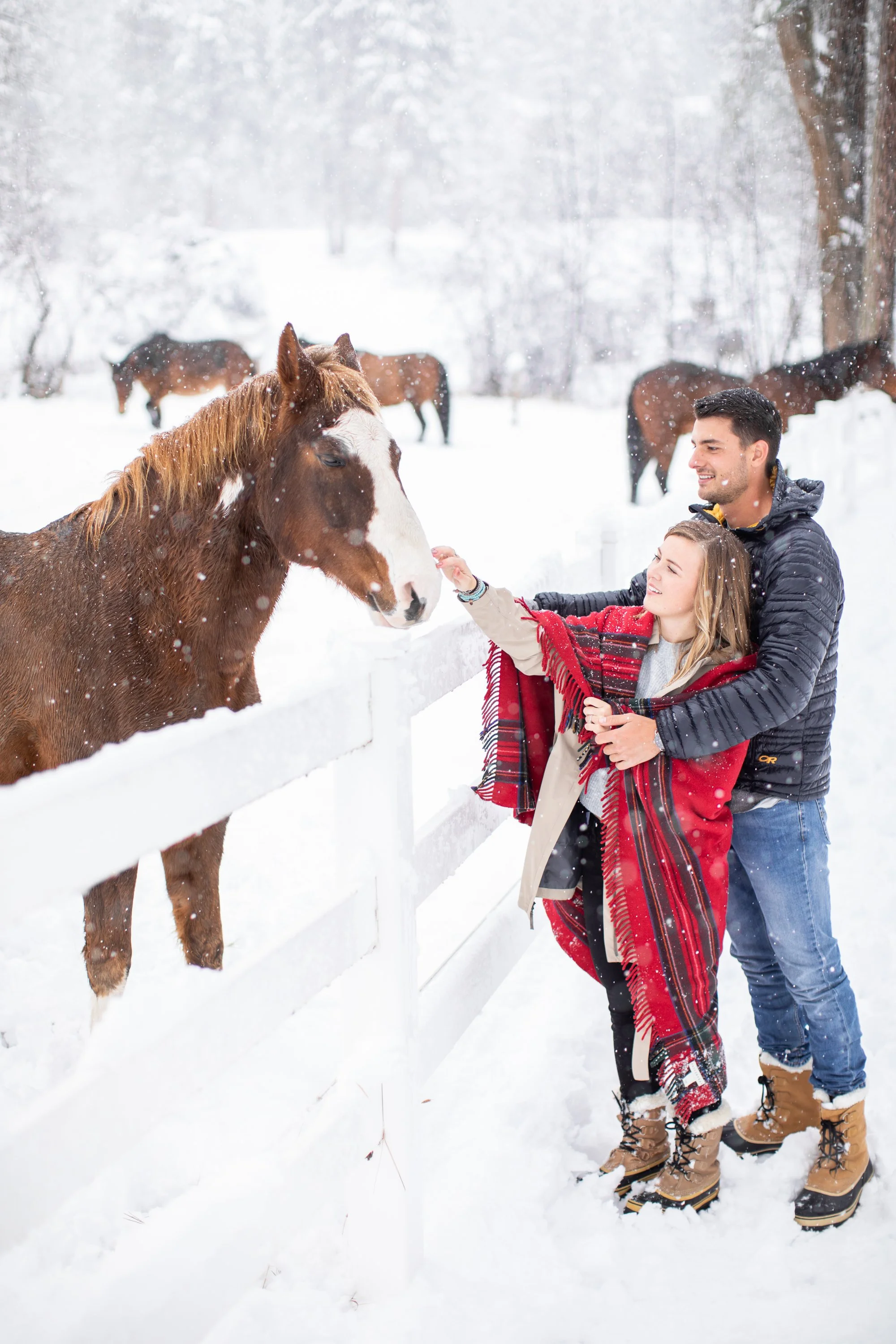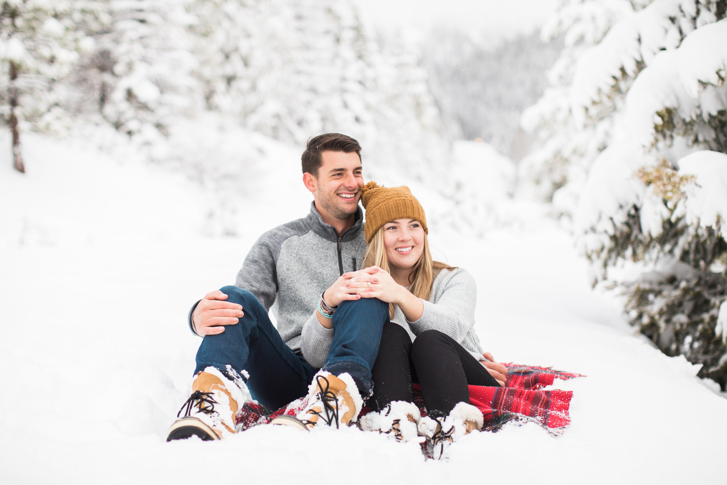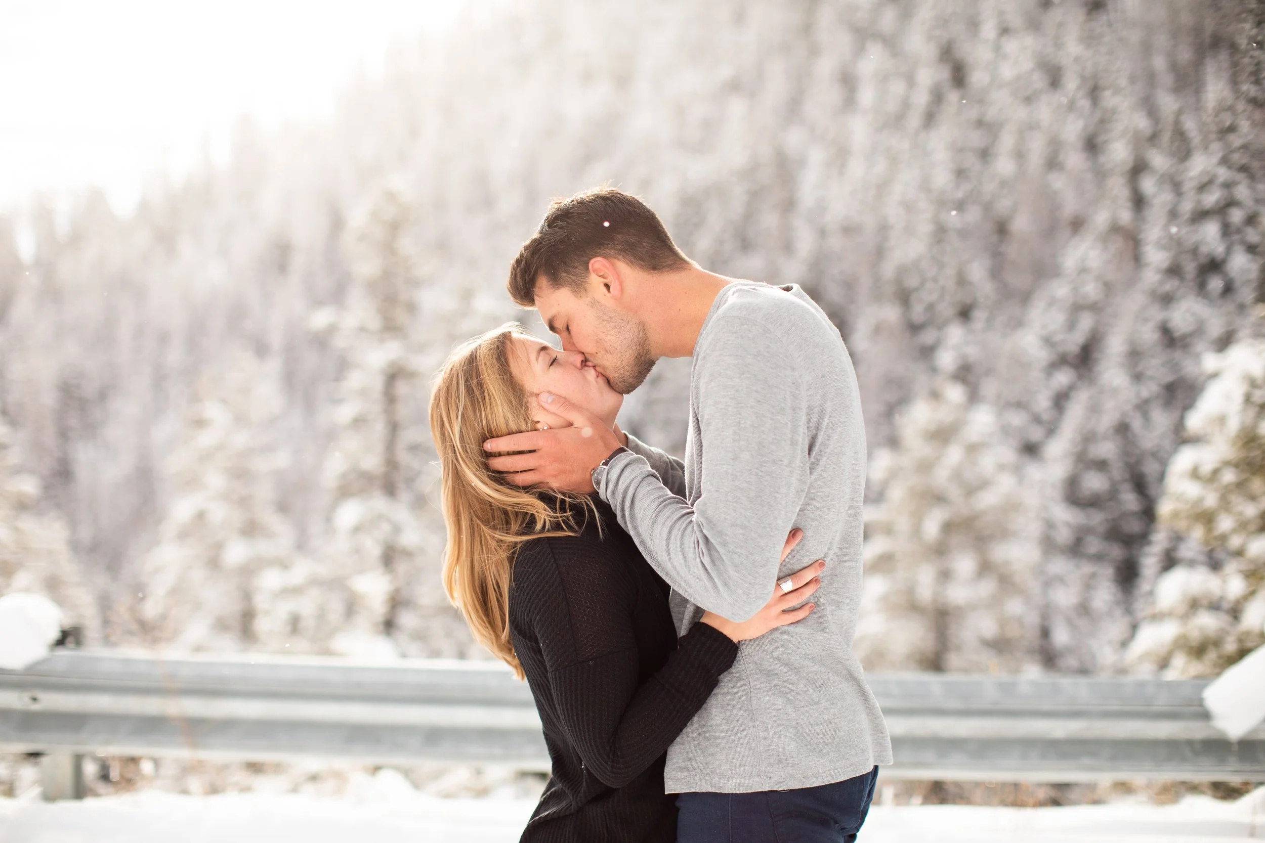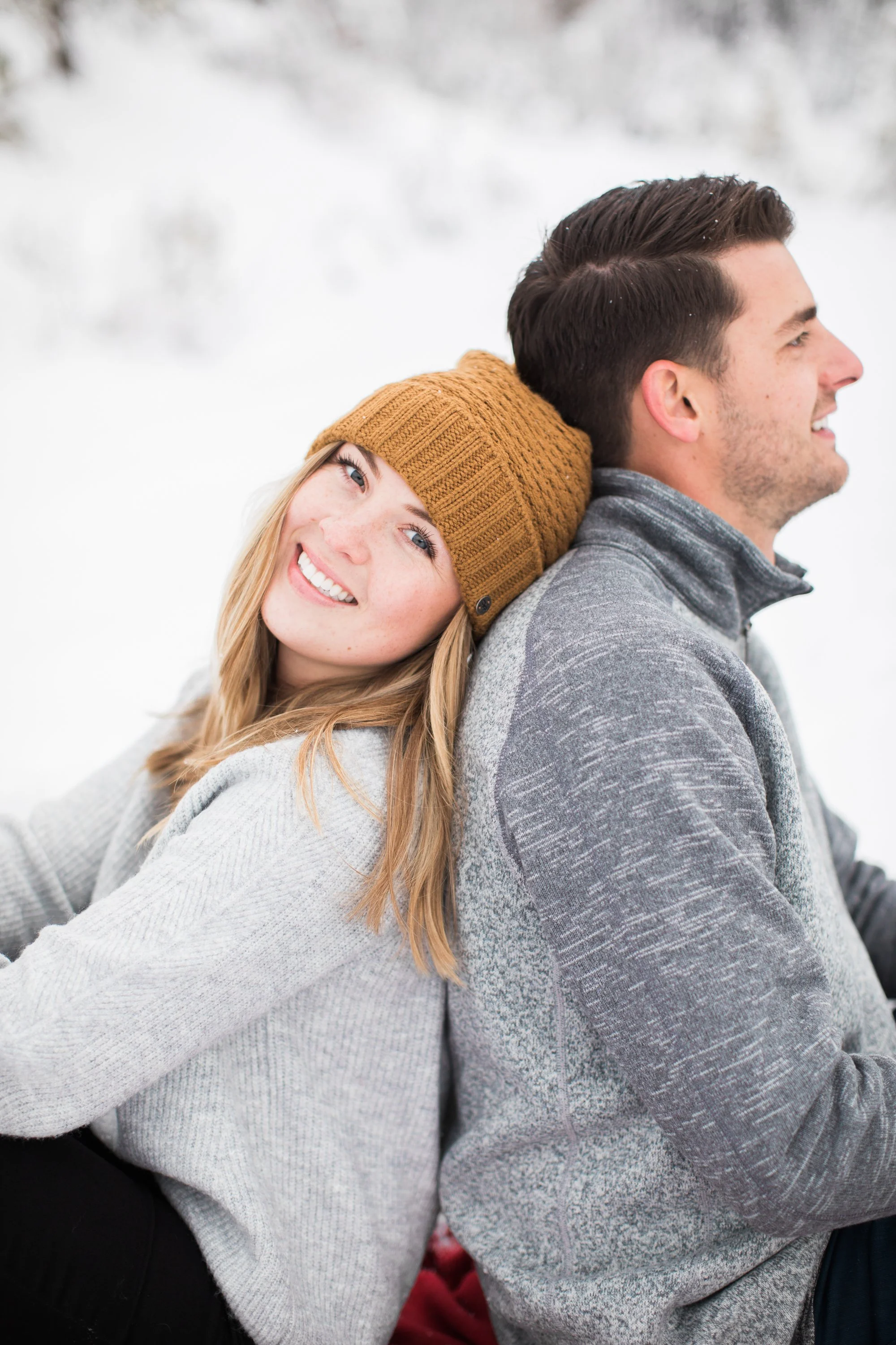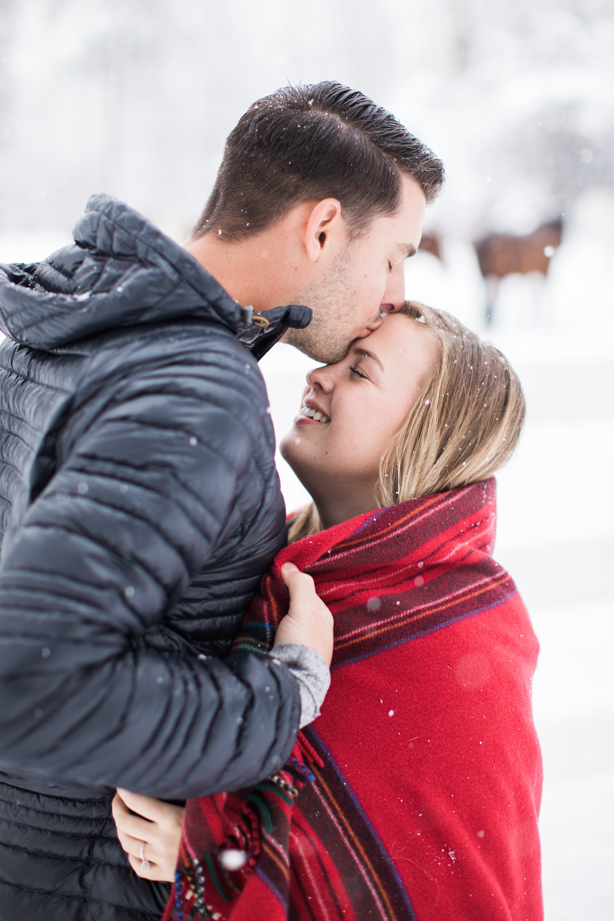 Surrounded by snow and wide open scenery, the two leaned into the season instead of fighting it. Laughter, movement, and close moments helped keep the energy natural, creating photos that feel authentic to their relationship rather than overly posed. Winter sessions have a way of simplifying everything, letting the focus fall on emotion, texture, and the people in front of the camera.